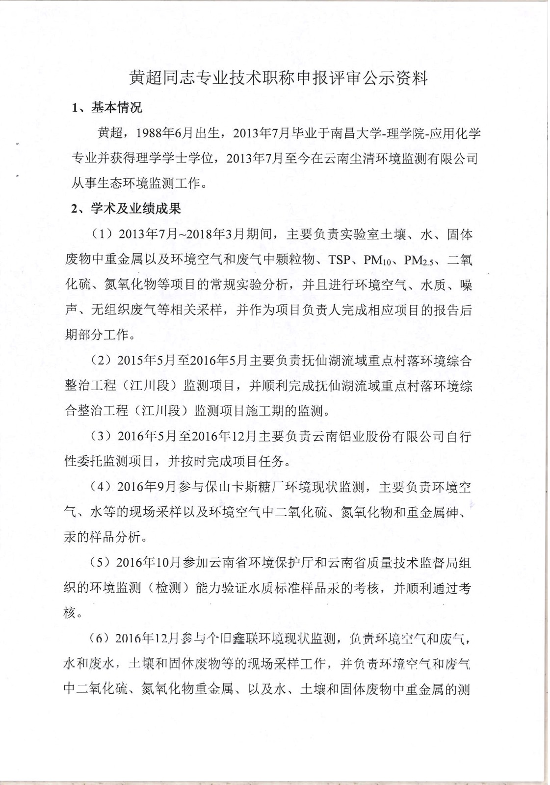 關(guān)于黃超同志申報(bào)工程師專業(yè)技術(shù)職稱的公示(公示時(shí)間:2022年7月8至7月15日)