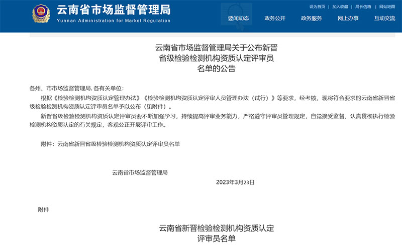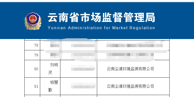 云南塵清環(huán)境監(jiān)測有限公司員工劉明靈、楊慧勤參加“2022年云南省市場監(jiān)督管理局省級檢驗檢測機(jī)構(gòu)資質(zhì)認(rèn)定評審員”考核。2022年8月參加理論考核成績合格,經(jīng)云南省市場監(jiān)督管理局審核,于2023年3月29日公布省級檢驗檢測機(jī)構(gòu)資質(zhì)認(rèn)定評審員名單,并準(zhǔn)予入檢驗檢測機(jī)構(gòu)資質(zhì)認(rèn)定評審專家?guī)臁?/p>